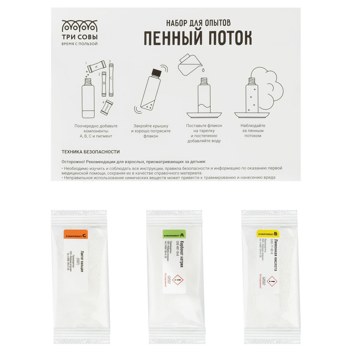 Набор для опытов познакомит вашего ребенка с химическими и физическими законами, разовьет любознательность, позволит самостоятельно провести первый научный эксперимент дома!