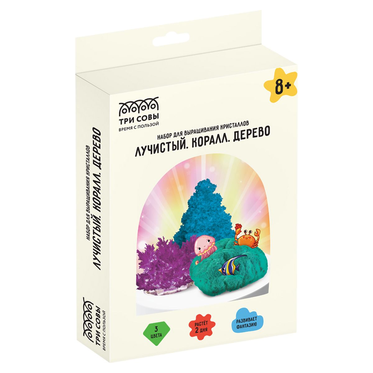 Набор для выращивания кристаллов «ТРИ СОВЫ» 3 в 1 позволит ребёнку всего за пару дней вырастить прекрасные кристаллы, в игровой форме приобщиться к научным знаниям и получить массу удовольствия!