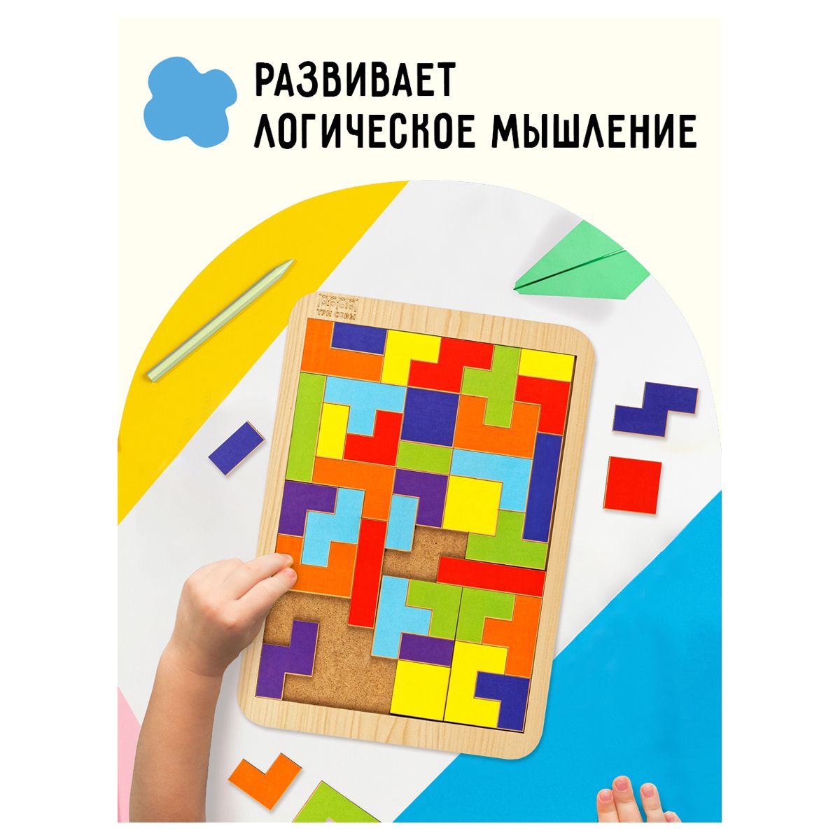 Развивающая игрушка «Тетрис большой» бренда «ТРИ СОВЫ» состоит из разноцветных фигурок разных форм.