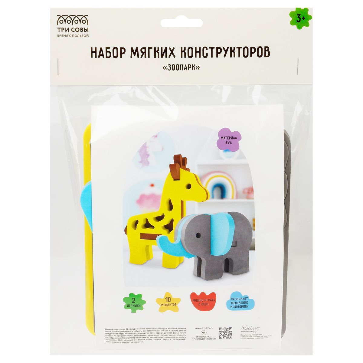 Мягкий конструктор «Зоопарк» бренда «ТРИ СОВЫ» состоит из 3D-фигурок в виде животных зоопарка, которые ребёнок легко сможет разобрать и собрать самостоятельно.