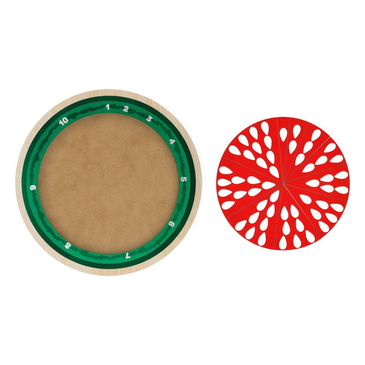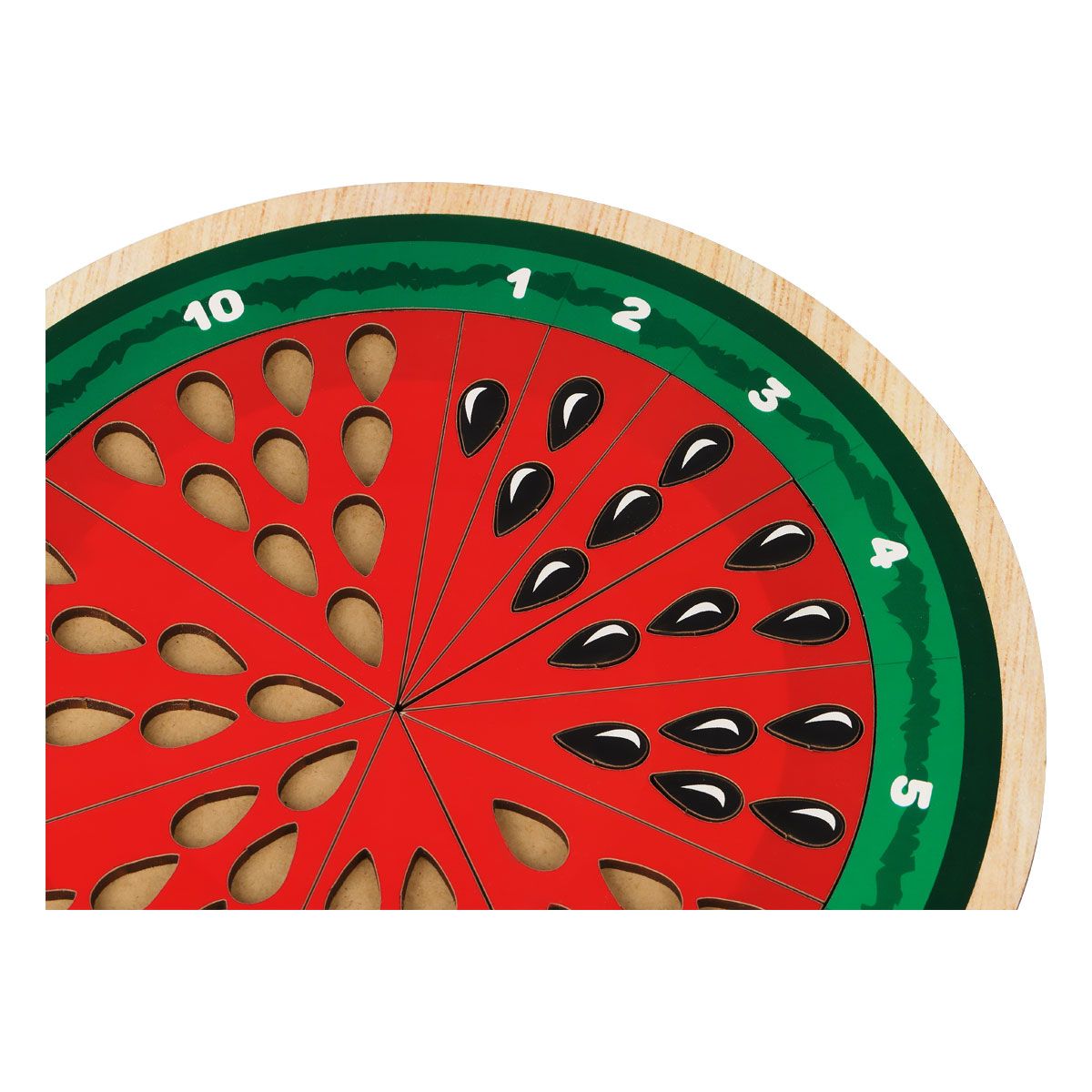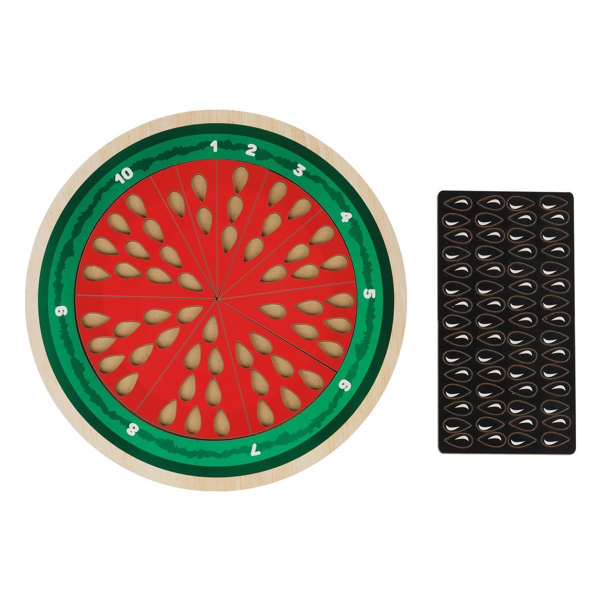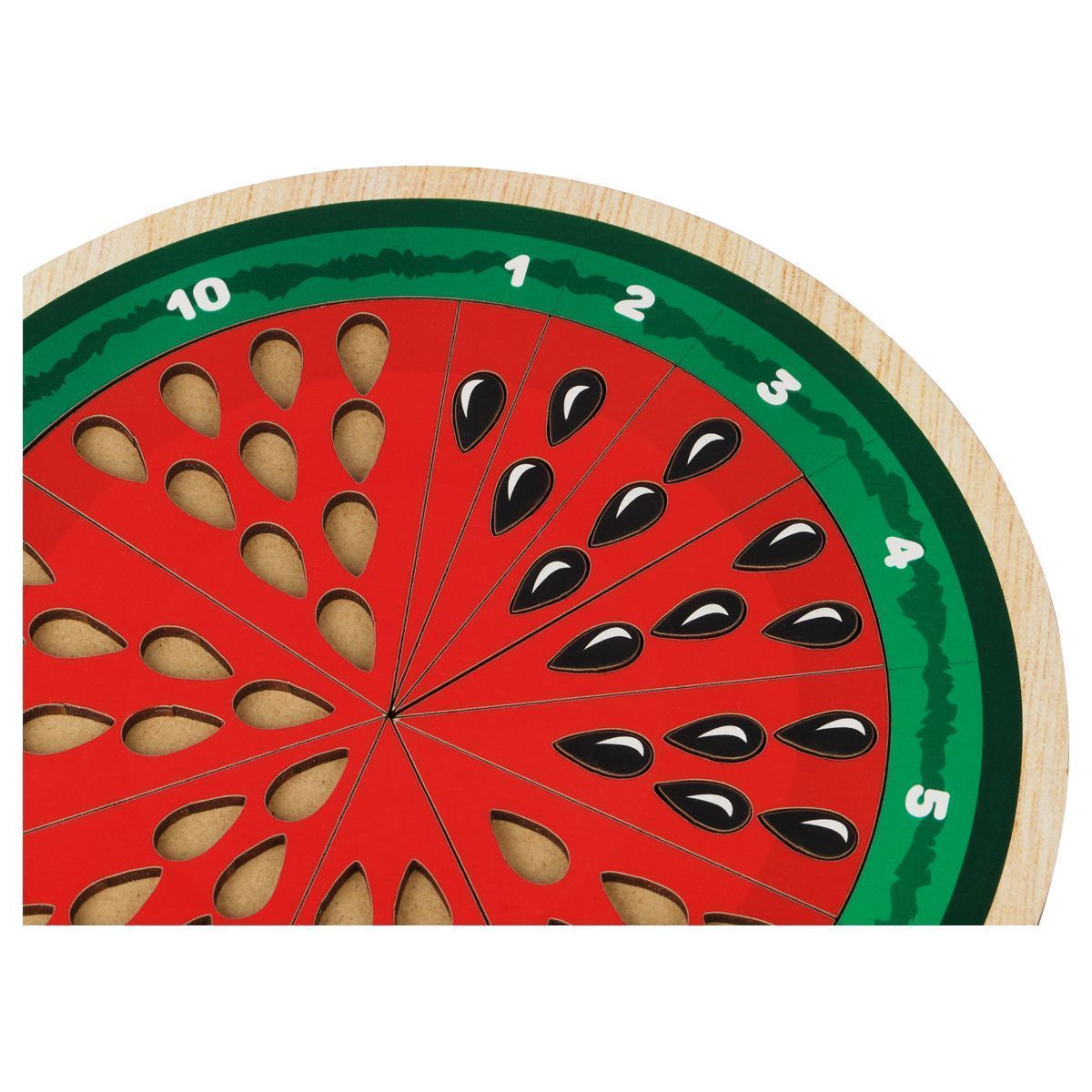 Обучающая игра «Арбуз» бренда «ТРИ СОВЫ» многофункциональна. С помощью неё можно учить ребёнка основам счёта, объяснить значение цифр, долей.