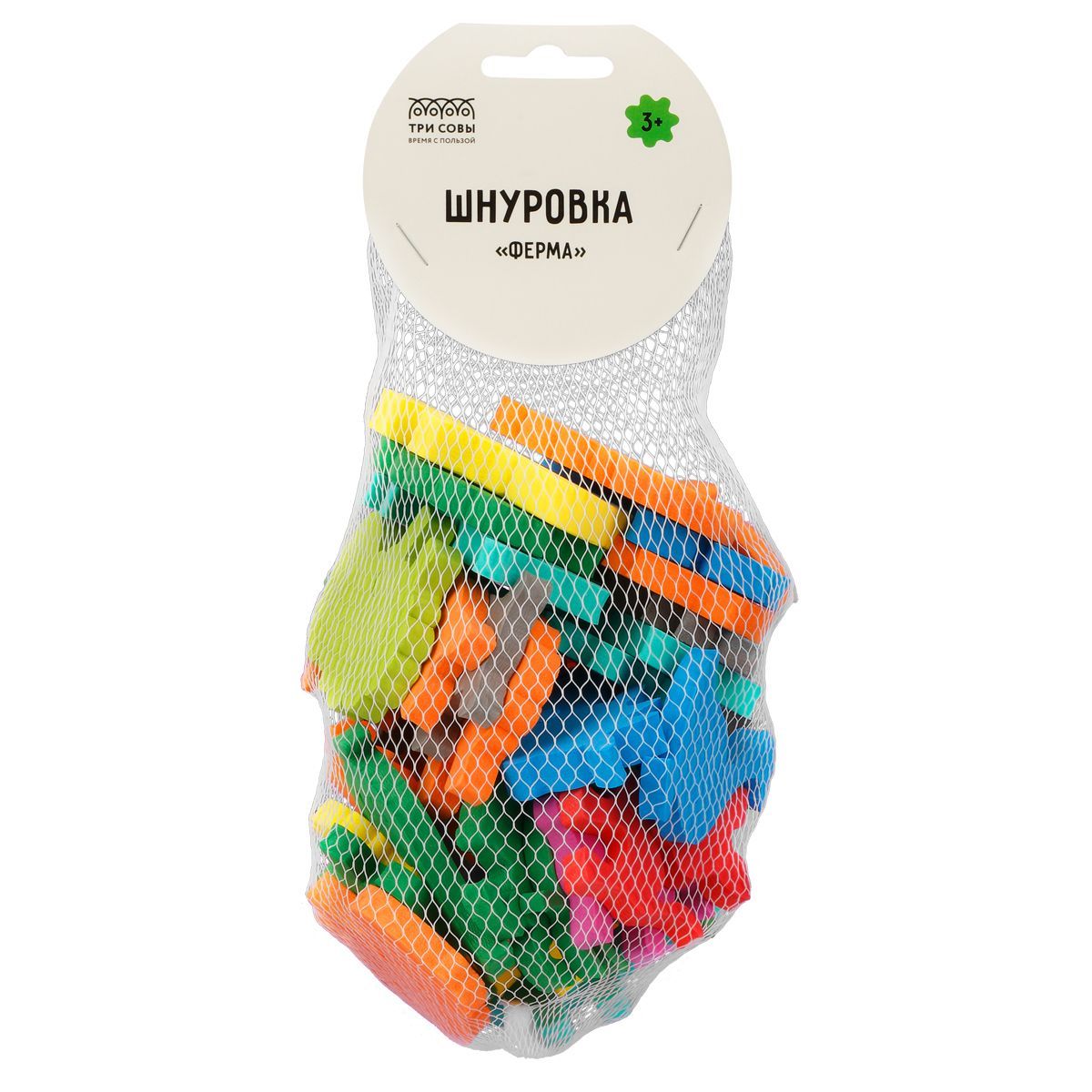 Шнуровка-россыпь «ТРИ СОВЫ» развивает у детей мелкую моторику, координацию движения рук, внимание и усидчивость, навыки конструирования, ориентацию на плоскости, аккуратность.