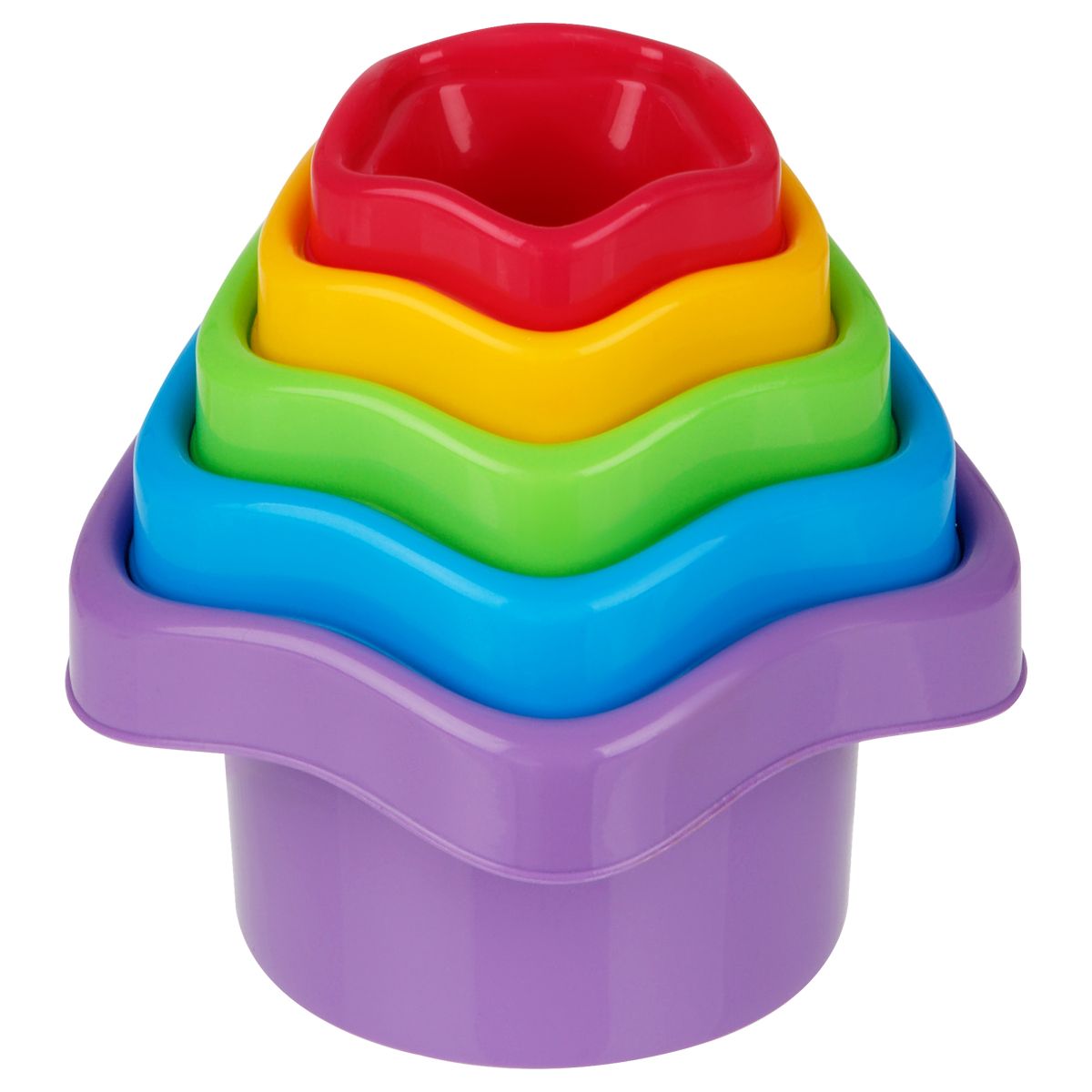Летом с помощью ведёрок можно делать куличики. Яркие цвета игрушек, которые не тускнеют, прочный безопасный пластик, четкая деталировка. Высота пирамидки в собранном виде - 25, 5 см.