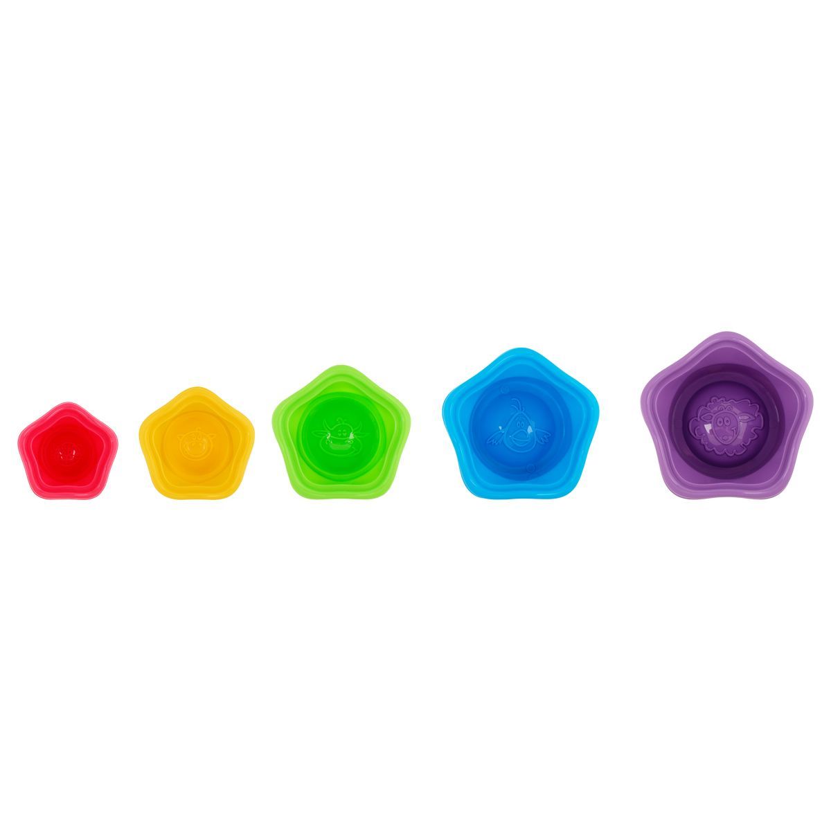 Ведерки вкладываются друг в друга по принципу матрешки, а также складываются пирамидкой.