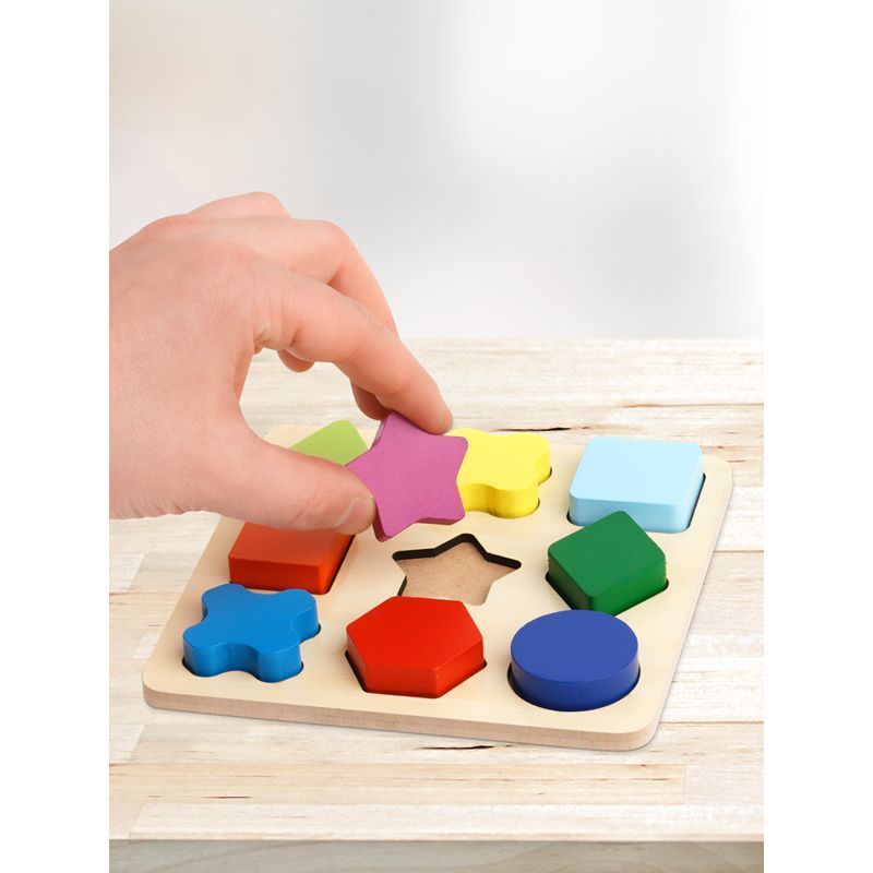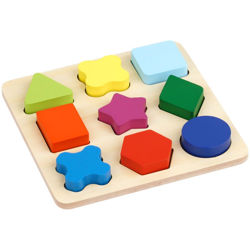 Сортер состоит из основания и девяти деталей разной формы и цвета. Задача ребенка − правильно распределить детали.