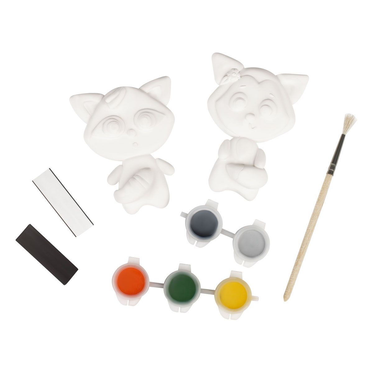 В наборе: 2 гипсовые фигурки, гуашевые краски, кисточка.