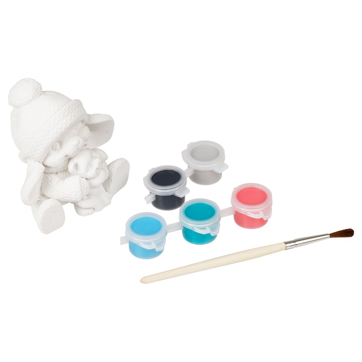 В состав набора «Мышонок с котёнком» входит: гипсовая фигурка, краски гуашь, кисточка. В итоге у вас получится фигурка 8.5 см. Набор упакован в картонную коробку.