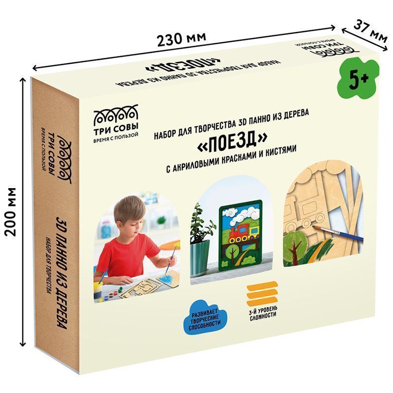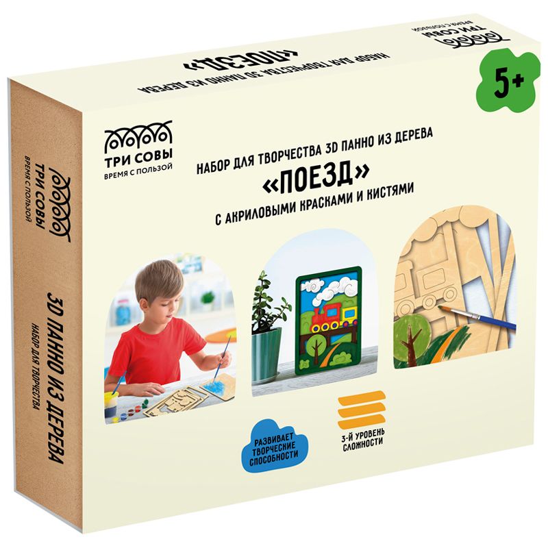 Набор для творчества «ТРИ СОВЫ» для создания 3D-панно из дерева станет отличным подарком. Он поможет развить образное мышление, логику, моторику и творческий потенциал ребенка.