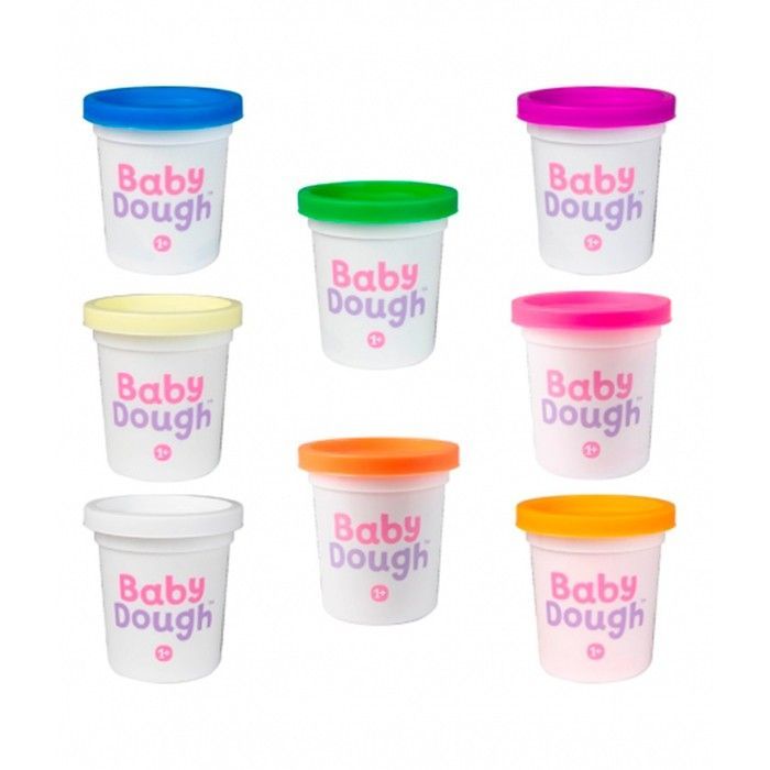 Ассортимент бренда это наборы по 4, 8, 14 баночек теста Baby Dough разных цветов для создания ярких и смелых шедевров. Цвета яркие и приятные для восприятия ребенка. Запах у теста нейтральный.