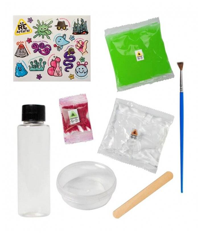 Увлекательный набор для всей семьи содержит 2 набора для проведения опытов, которые помогут раскрыть шпионские секреты и создать яркого лизуна своими руками.