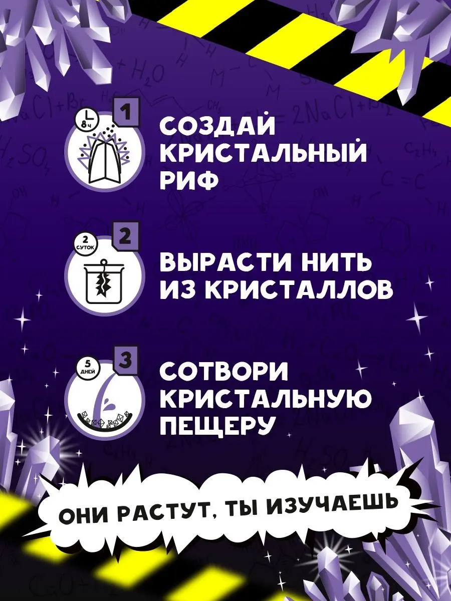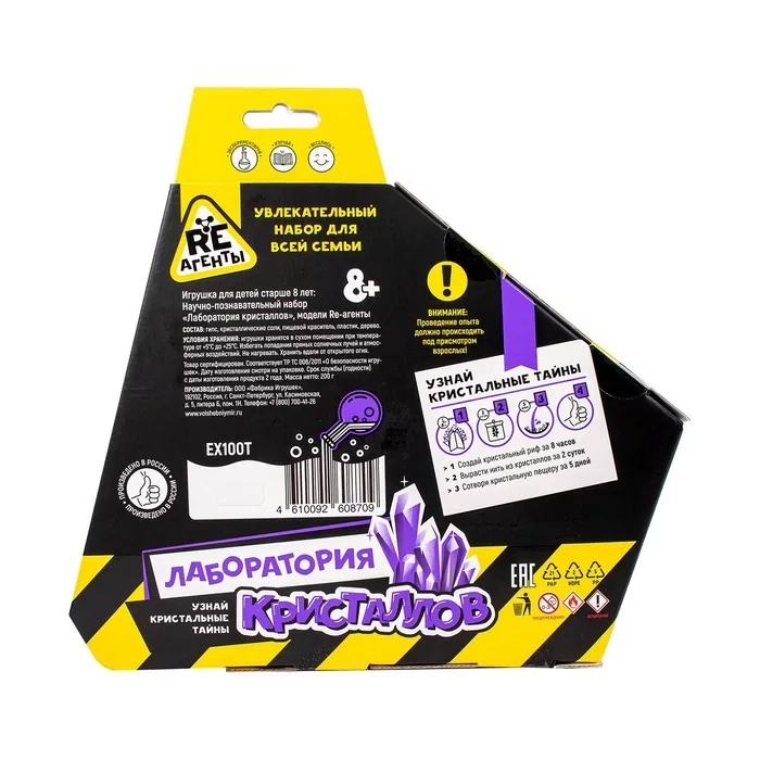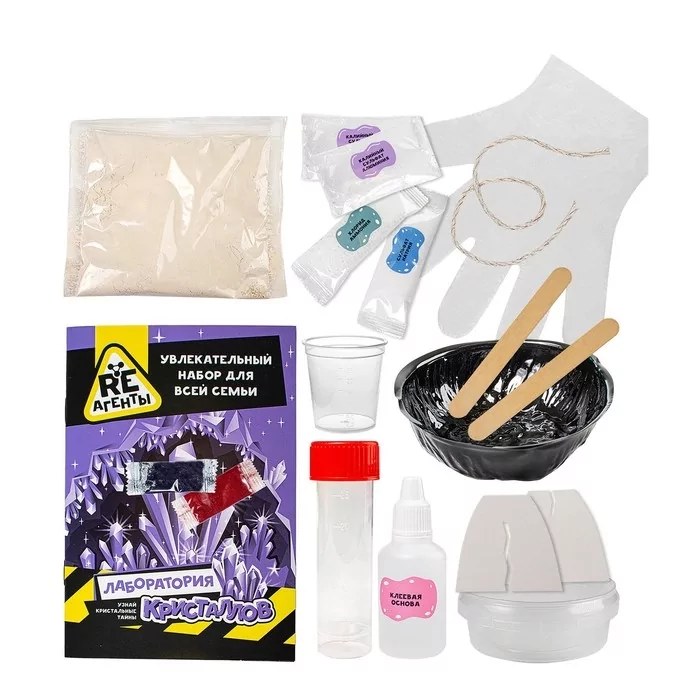 Научно-познавательный набор Re-Агенты "Лаборатория кристаллов" продемонстрирует юным экспериментаторам, как создать кристальный риф, вырастить нить из кристаллов и сотворить кристальную пещеру!