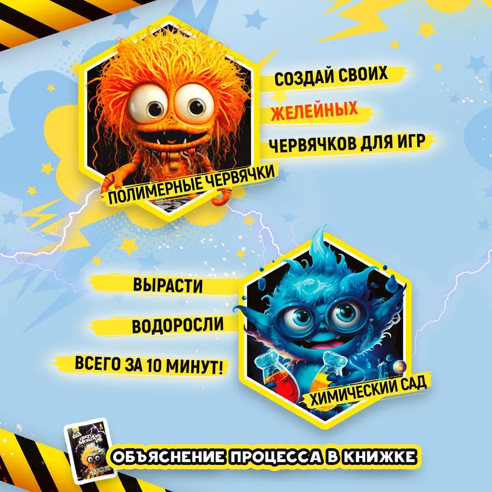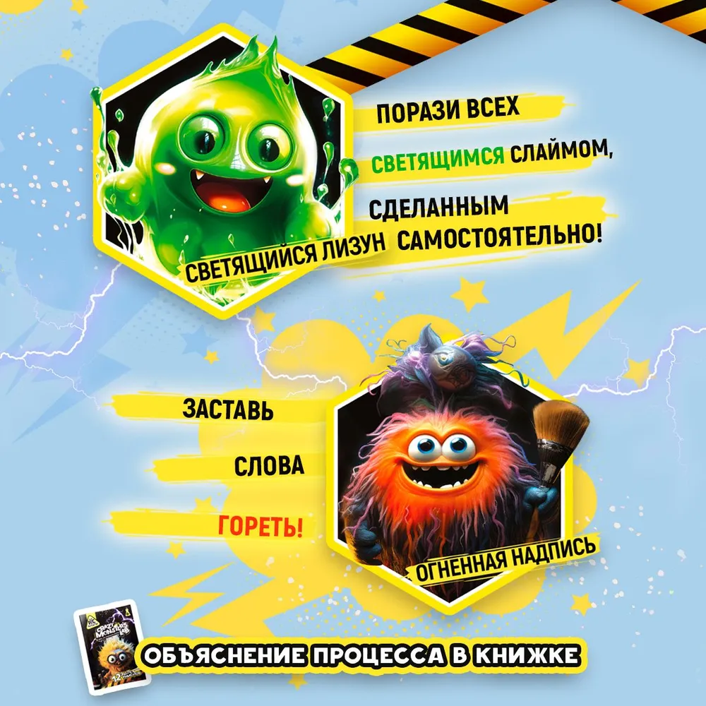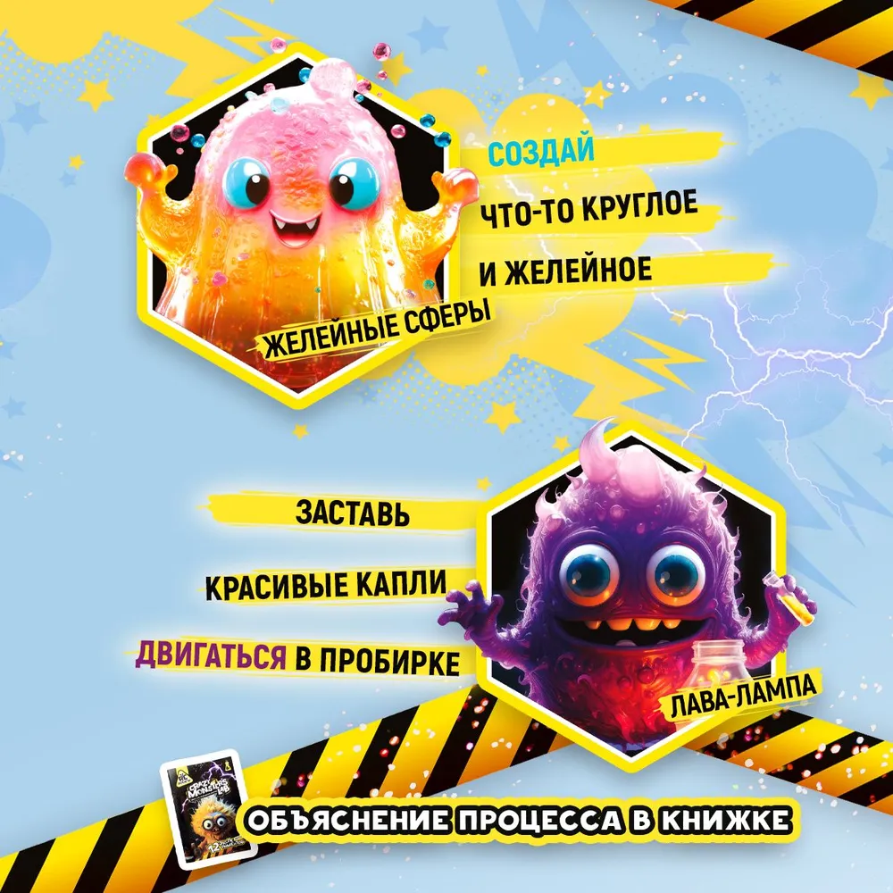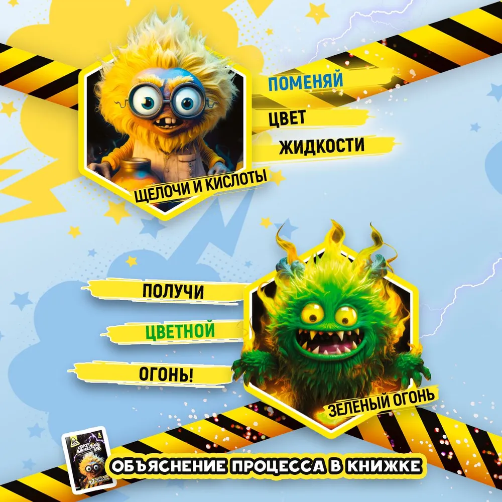 Набор включает 12 увлекательных химических экспериментов, вдохновленных забавными монстриками.