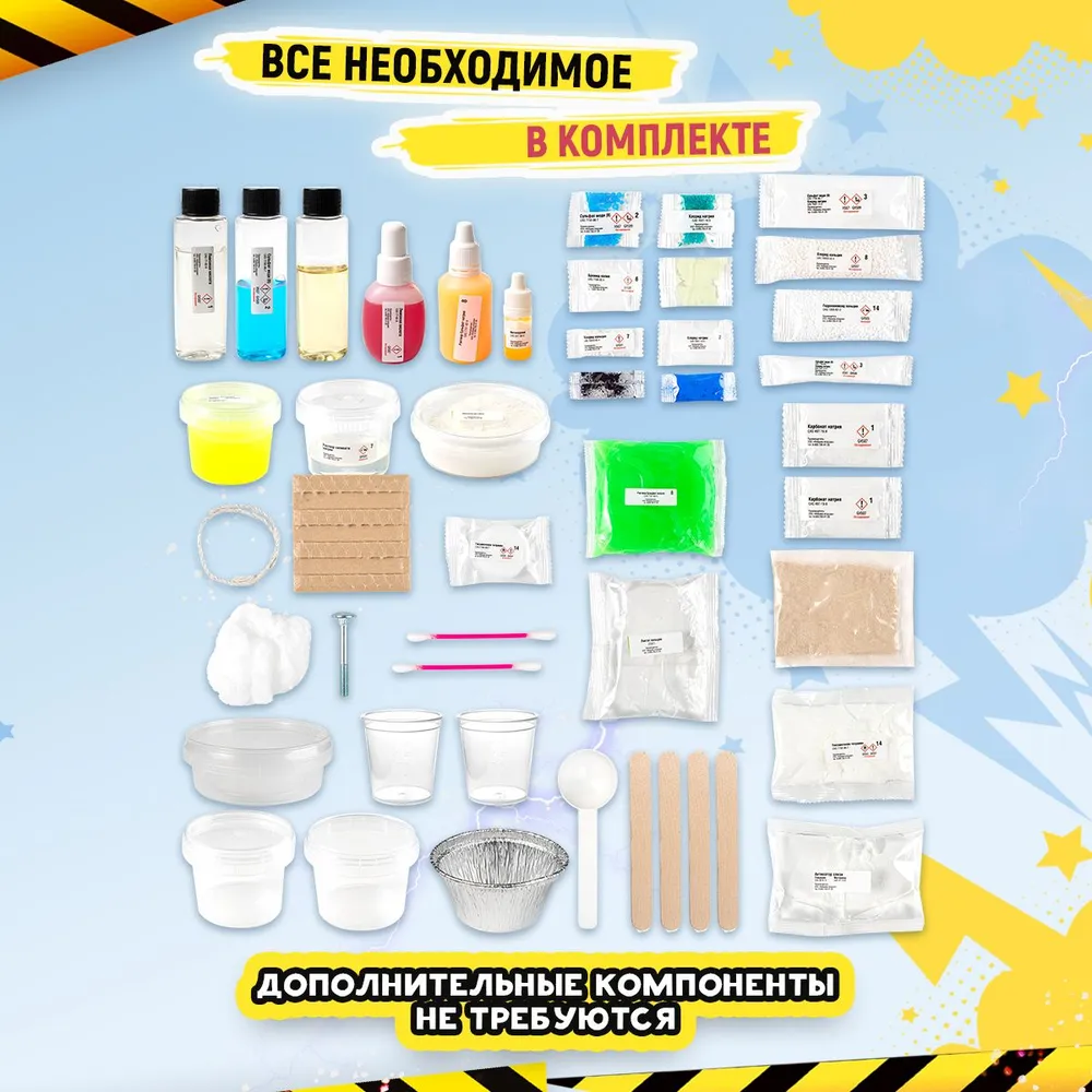 Все необходимое входит в комплект! Ничего не надо добавлять или искать. Квест опыты с монстрами превратят процесс обучения в веселое приключение, которое поможет понять детям, что химия – это простая наука, веселая и интересная!