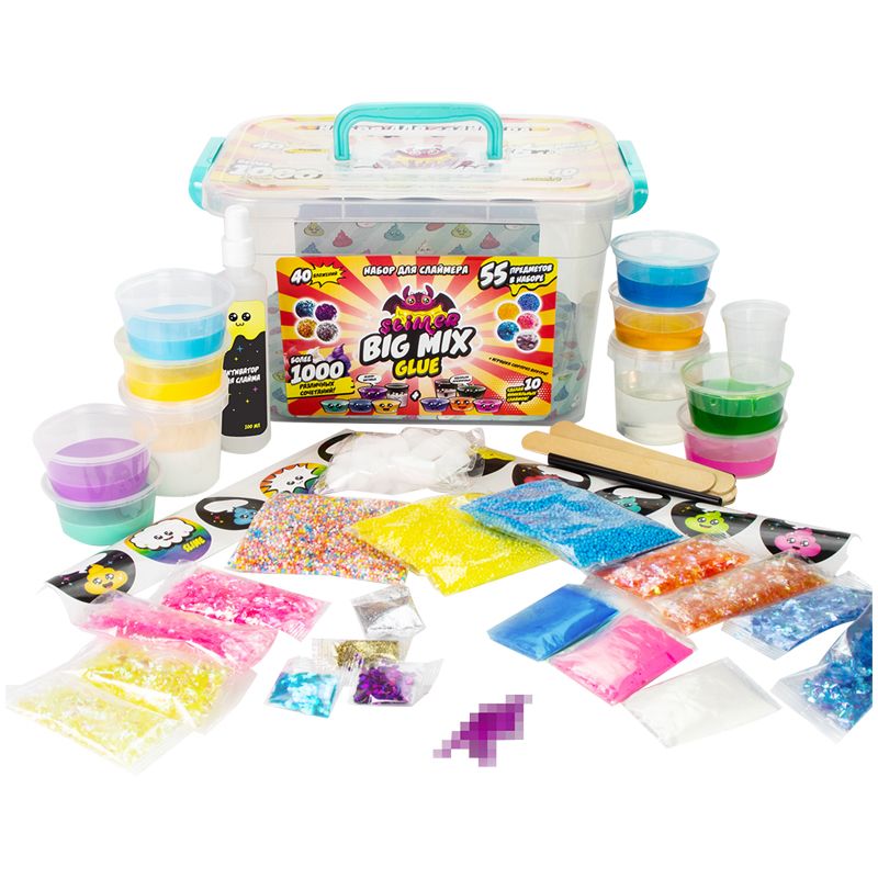 Мега-формат DIY лаборатории. Все для создания целой коллекции слаймов. Самые популярные цвета клеев и много красивых наполнений. Ребенок найдет в этом наборе всё для слаймового творчества!